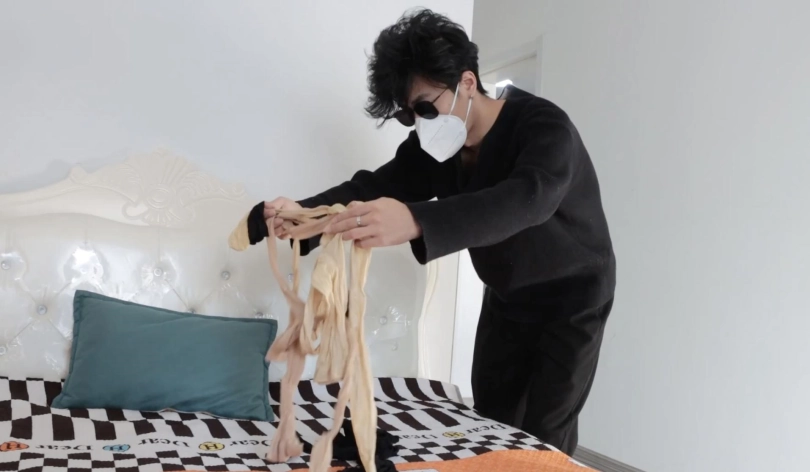 这时劫匪从躲的地方出来,拿刀威胁白领,让白领换短裙,白领就范。劫匪说我看到衣柜里有不少好东西,随后拿出一些丝袜放在床上让白领选一个堵嘴。之后让白领转过身,白领在并不知道身后的情况,劫匪突然从后面捂住了白领的口鼻。在迷药的作用下白领双脚无力的乱蹬,最终昏迷了过去。