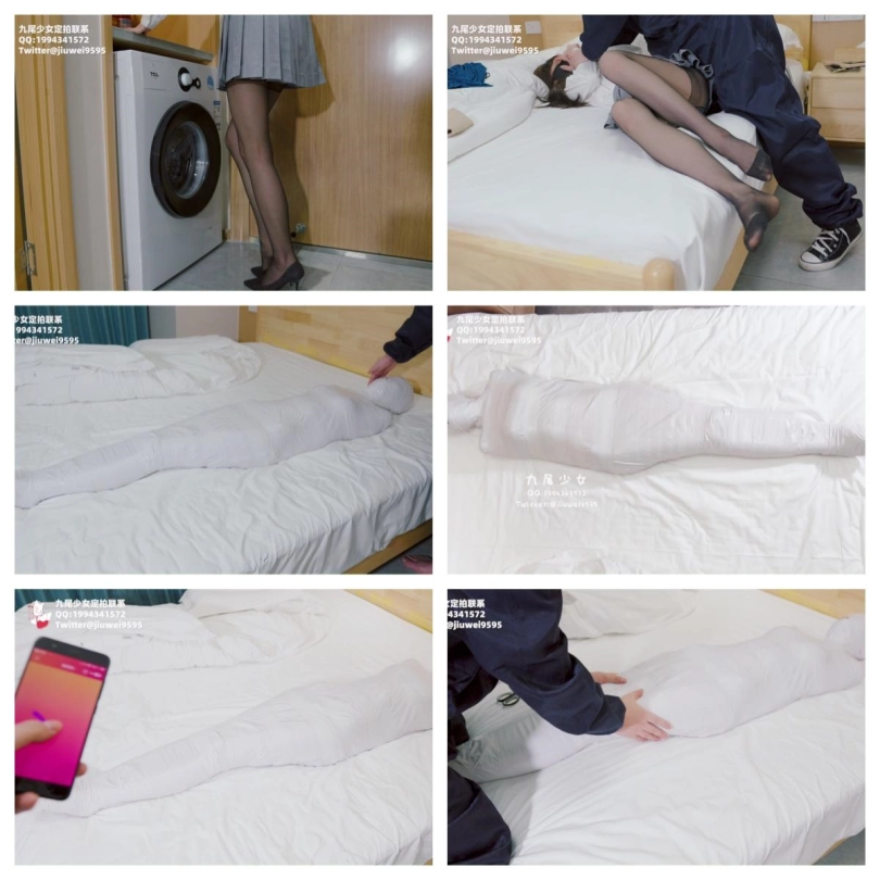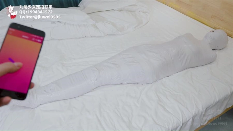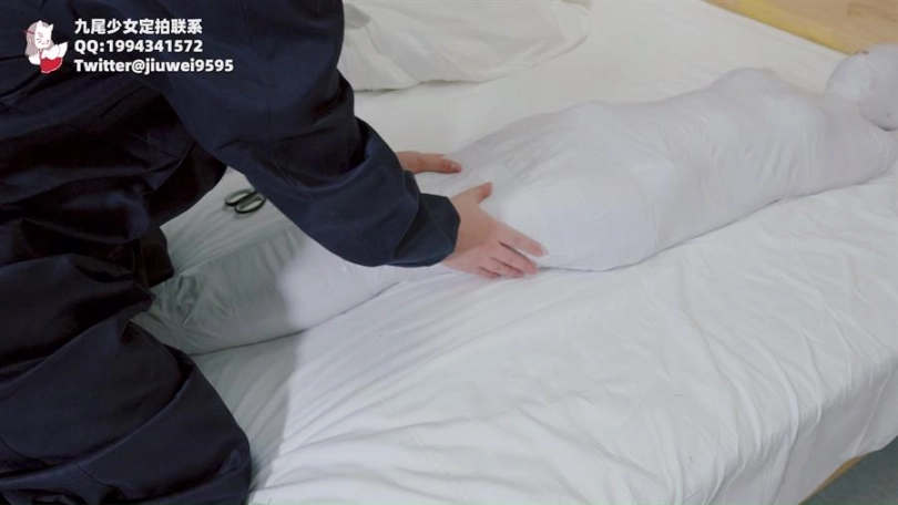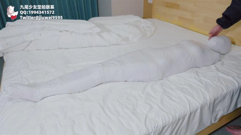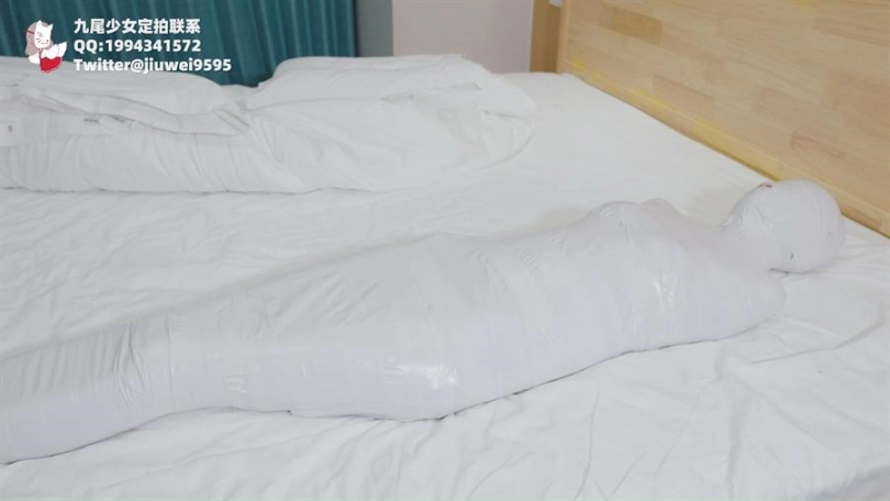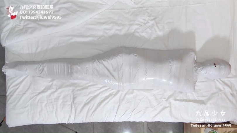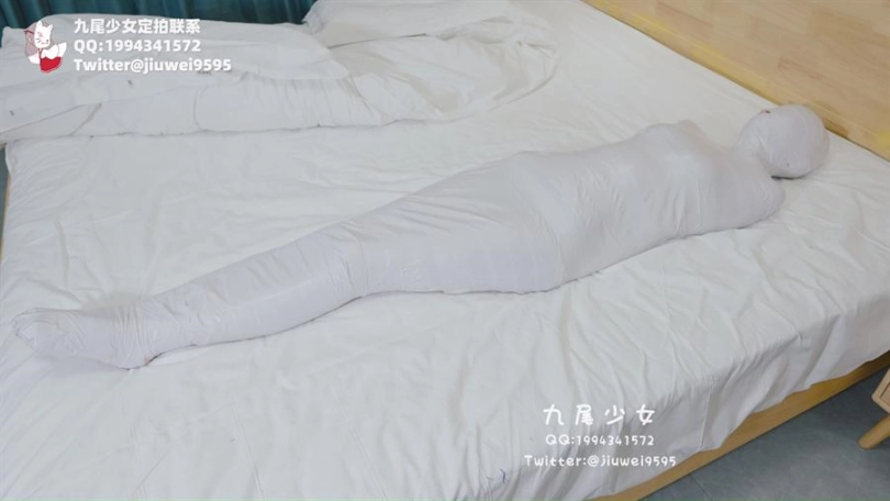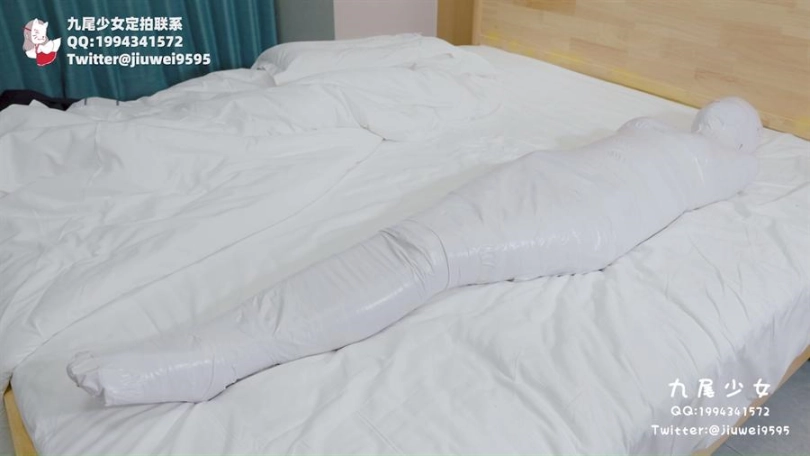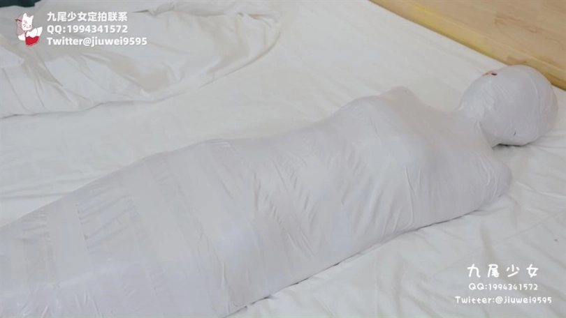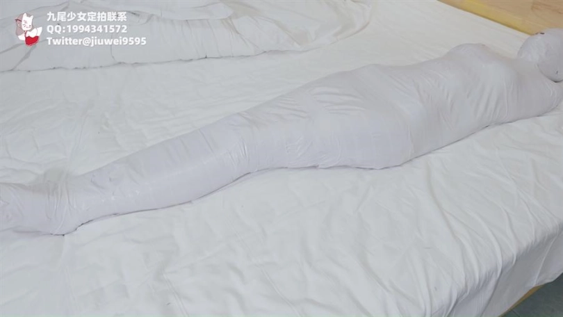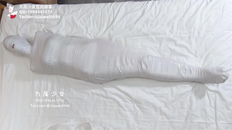 【九尾少女】纯白胶带全包木乃伊,黑丝jk小姐姐回家后被小偷制服捂晕,纯白胶带木乃伊全包拘束挣扎,无线[X_X]裆部固定放置play