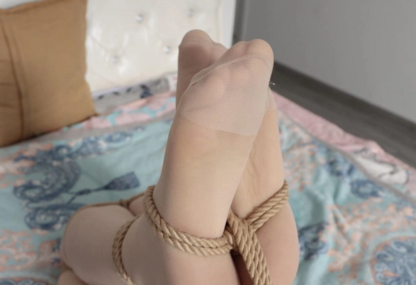 第二天,小王叫醒昏睡过去的小兰,解开腿上的束缚,牵着小兰走走活动,喂了一点水。然后如图驷马放床上,丝袜包手蒙眼堵嘴,小王说:“先给你少一点,这样你没什么力气逃跑。我要晚上回来,你要是乖乖的不动,我回来会好好奖励你的。”戴上耳罩,留小兰一个人独自挣扎。。。