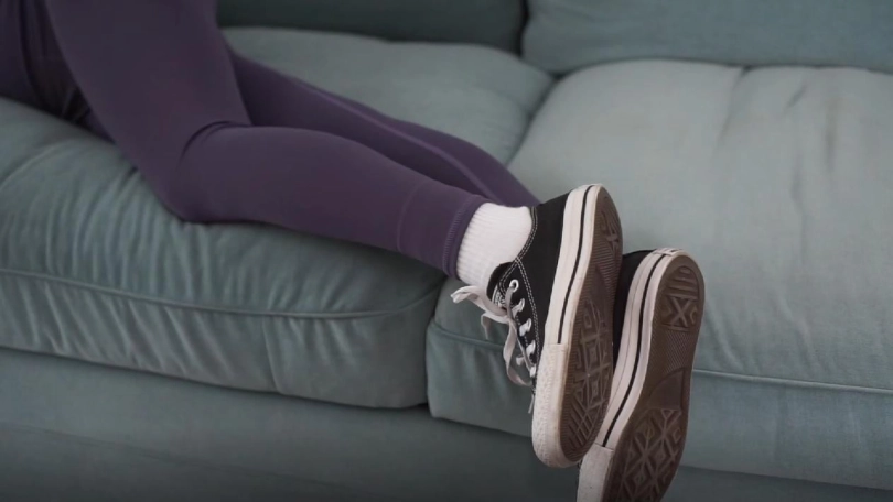 歹徒对着沙发上的小0一顿掰腿虐待