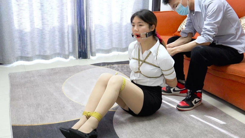 【子衿】新模珞珞职业装肉丝高跟五花紧缚挣扎口枷口水