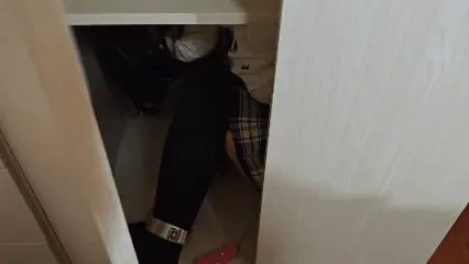 今天苏苏穿着可爱的jk套装,给自己戴上了手铐脚镣并连接到了一起,换上黑丝,开始挣扎,结果却是被戴上了指铐,接着铐成驷马的样式并用自己的小脚努力去触碰钥匙,后来被戴上了颈手枷,开始徒劳的挣扎,最后被五花大绑了起来塞进柜子里,塞好td,开始挠痒tk,原本狭小的空间容纳不了苏苏的挣扎,敏感的在柜子里扭来扭去