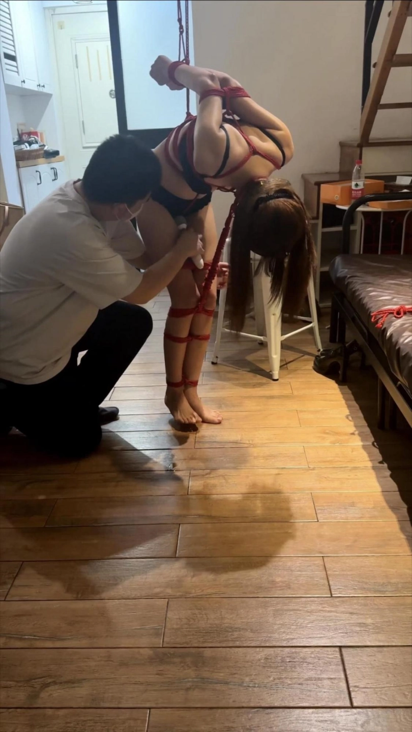 小骨头第一次绑这么极限的动作,一直在安抚模特,因为太痛苦而且加上振动棒的调教下不得不提前解掉。