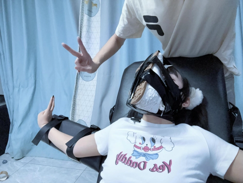 把妹子拘束在足枷重刑床上,鞋子摆放在足枷附近,进行简单的挠痒,并且用小红抽打脚底和大腿。在咨询妹子可否打一下肚子并获得同意后用拳头打了几下小腹。后面突发奇想,用胶带把鞋子扣在妹子口鼻处固定好,一段时间气味责后,拿出热缩袋,套在妹子扣着鞋的脸上进行呼控窒息。同时重复抚摸、鞭打、tk。值得一提的是后续剪辑视频中发现妹子在呼吸限制中居然湿了,一直在夹腿,事后和我说意识有点模糊但是很舒服....