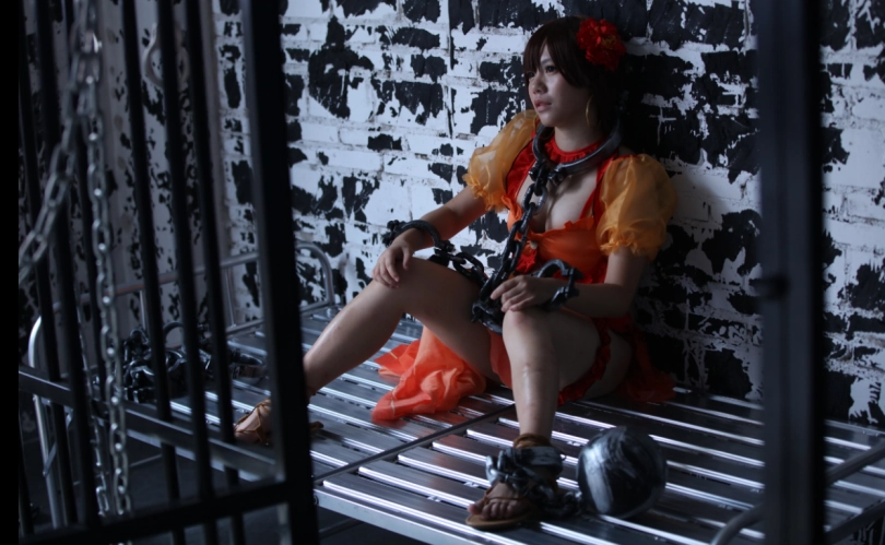 FGO 玛塔哈里惨遭监禁。沉重的黑色项圈,镣铐,更有巨大的铁球束缚,让人寸步难行。在铁笼里苦苦挣扎,更被紧紧的麻绳束缚,巨乳呼之欲出。