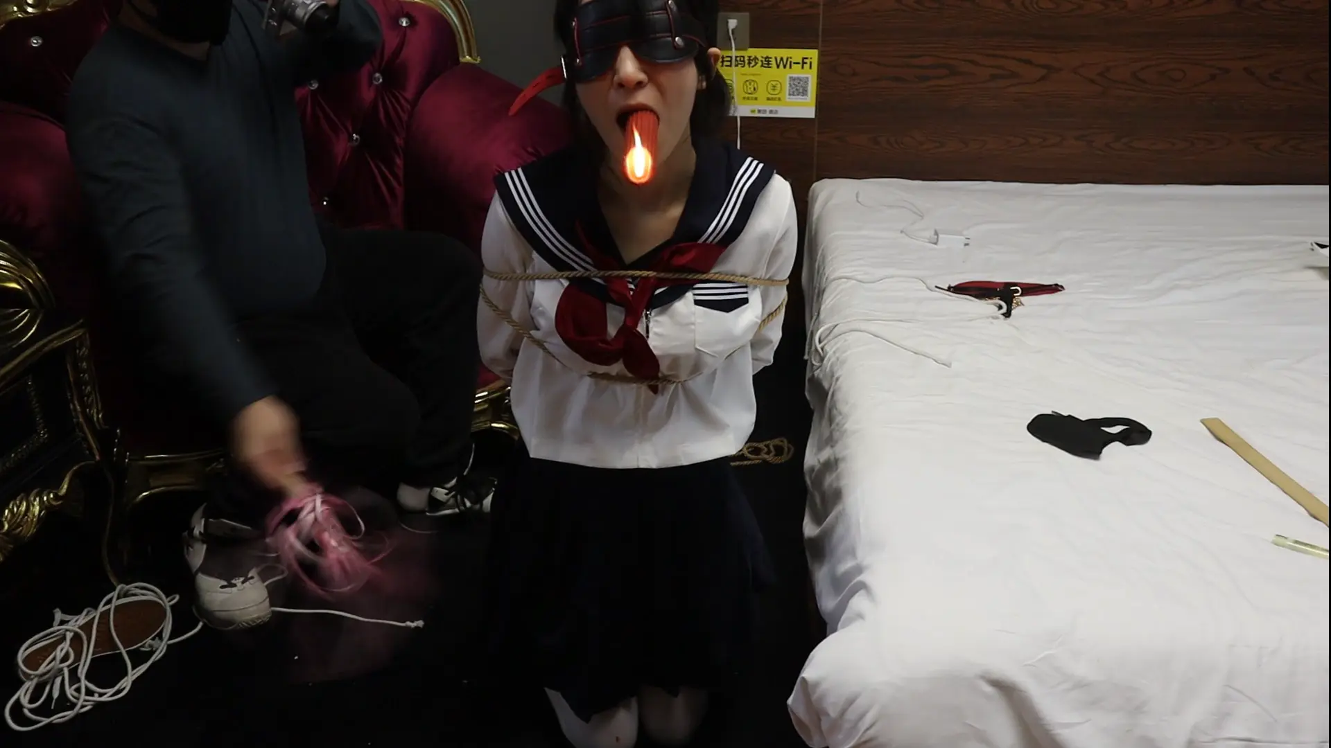 【荷仙少女】线下真实调教少女名模嗷嗷 进门接受调教 跪在地上被捆绑时候瑟瑟发抖的少女身躯,玩具控制之下还要 强制叼燃烧的蜡烛并接受鞭打调教,一直在痛苦的呜咽,中途脱下嗷嗷的皮鞋换帆布鞋,接受痛苦调教,在怀里害怕的