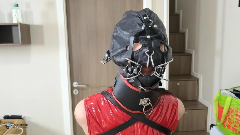 【JS】【夏沐】皮革拘束单手套头套马具口环鼻钩脚铐棒棒刺激