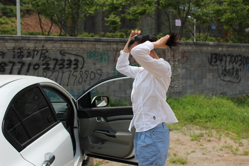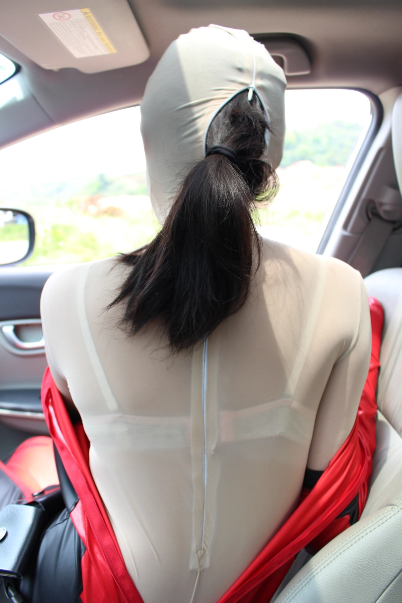 天气很炎热的7月拍摄,妹子体验了窒息和酷热的双重忍耐最后到达极限