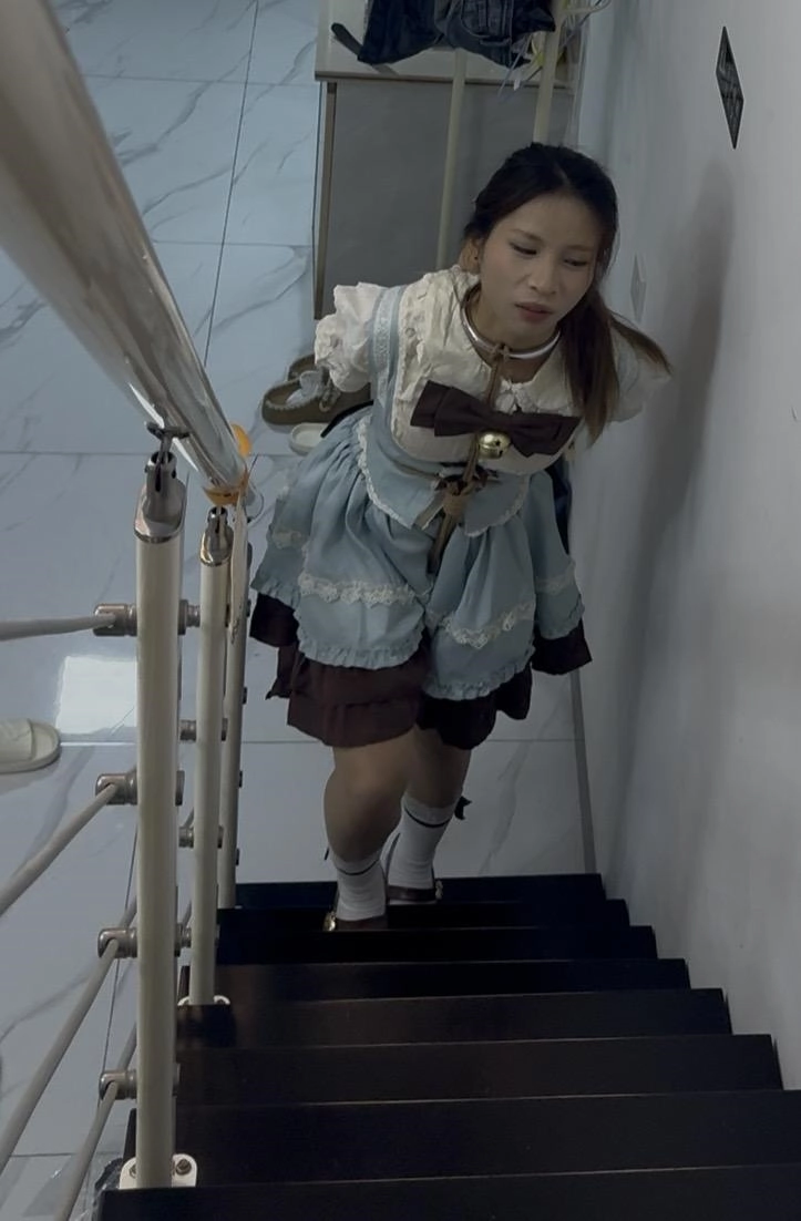 【内八】Lolita女孩甜巧却极度反差被绑成粽子 极限倒吊直臂