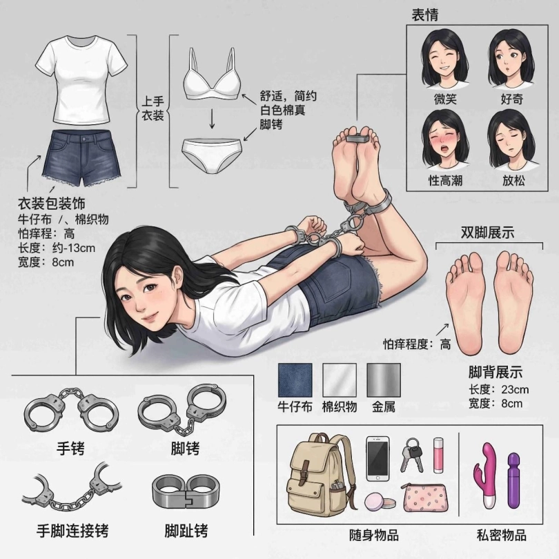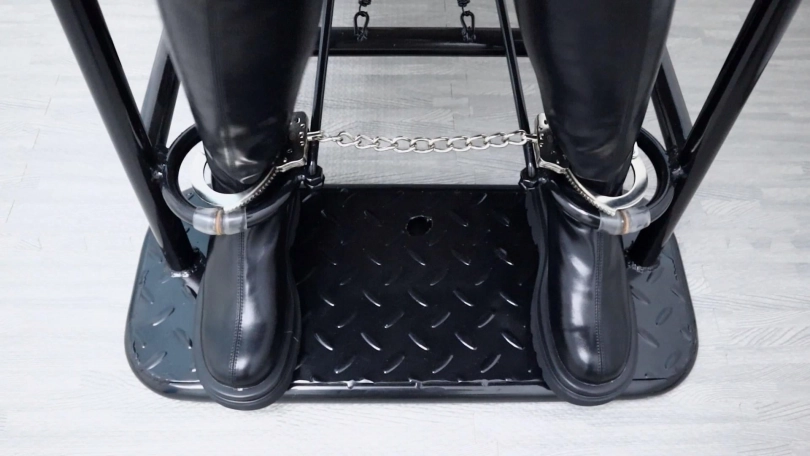 【趾间艺束】缓刑犯果果接受脚部检查 灰丝长筒靴口环 挠脚挠全身TK 手铐脚铐