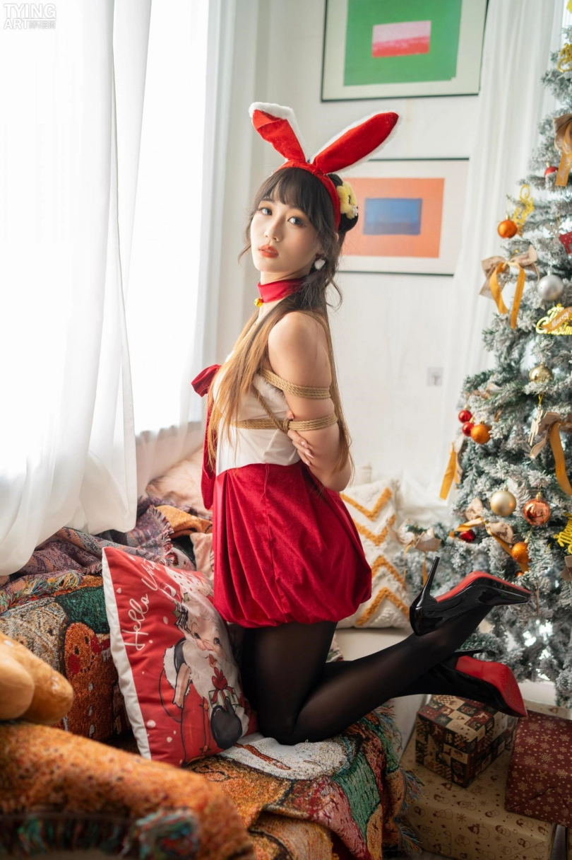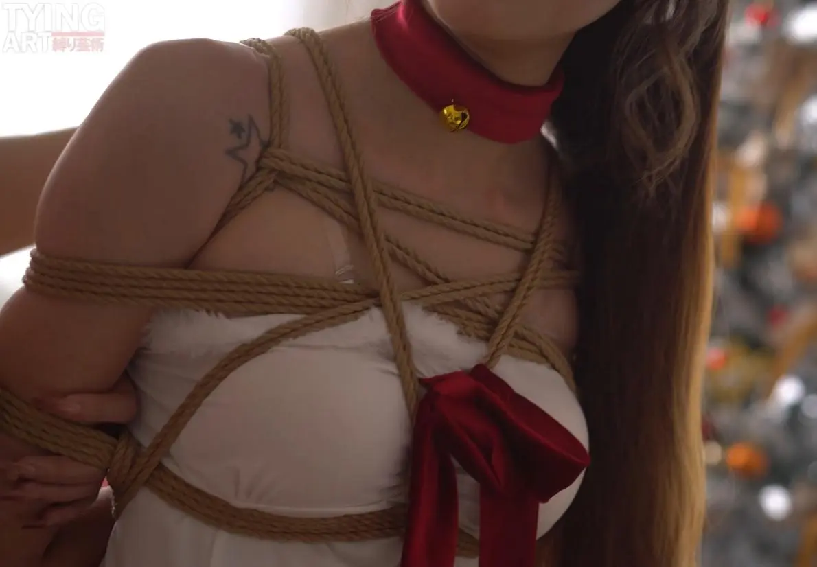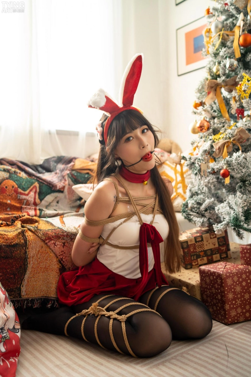 模特Mmi,圣诞写真,打开礼物盒,里面是用来捆绑的绳子。