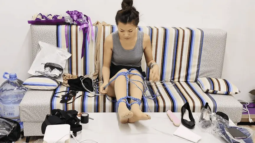 周末诺米一人在家,突然想玩一下自缚,自己找出绳子和丝袜慢慢捆绑好,然后拿出震动棒按摩敏感地带,下面渐渐地湿了。就在她即将高潮的时候,蒙面人闯进了她家了,将她一遍又一遍捂晕然后抚摸她的全身,她每次晕倒前都会翻白眼。等坏人离开后,她迅速挣脱开来然后成功逃脱了。