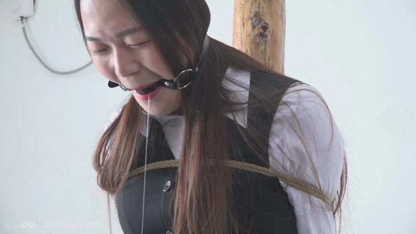 嫩模琪琪和园园被捆在两根柱子上,一个戴口球一个戴口环,比赛看谁流的口水多,喜欢口水的朋友有福了。