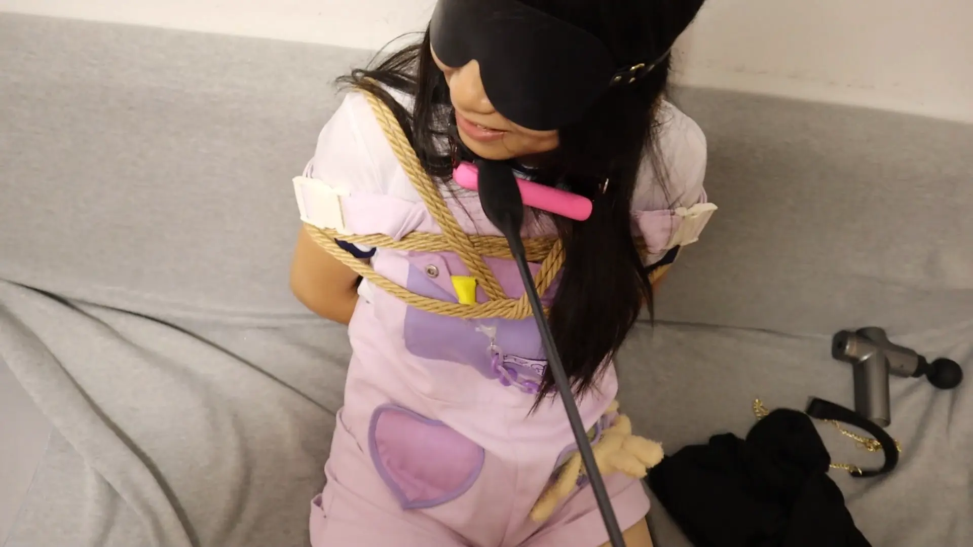 双视角,少女A安安姐的工装可爱风,她只是我的姐姐,姐姐说紫色很有韵味,所以连鞋袜都是紫的,口含骨头口塞,折磨超敏感的姐姐当然要狠狠挠啦,挠到笑哭才对,不听话就打,强迫对话数数。