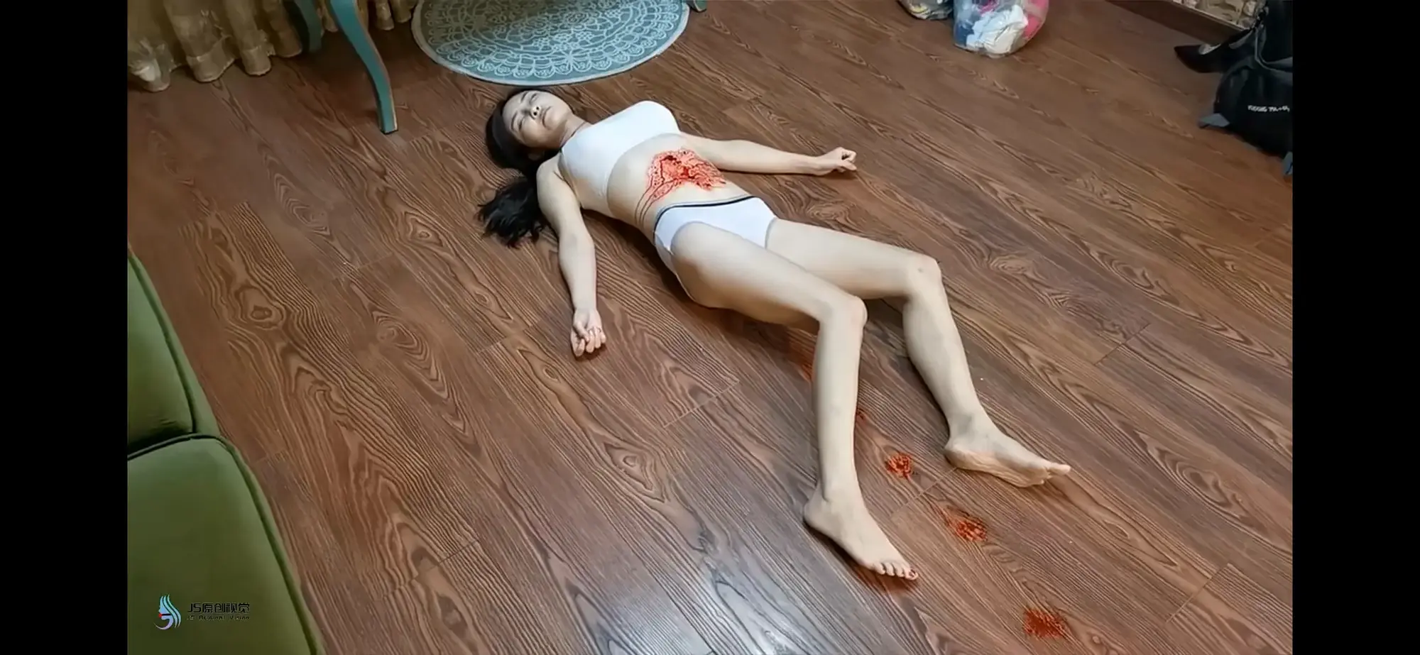 小七因为入室,看到了女主人的美貌新生歹念,先将其勒住其脖子将其弄晕,然后脱去其衣服,使其仅剩内衣,在玩弄之后,对女主人下了毒手。