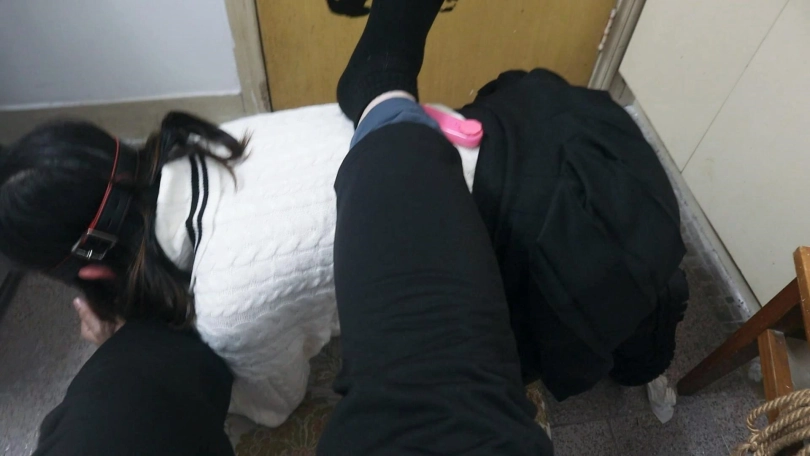 领玥运动鞋和长筒靴的超级结合的可爱少女玥,绑在柜子上的的捆绑虐待女孩,裙子上的玩具从来就没有停止过,玩弄玥香舌的手和扇脸的手居然是同一只,再让长筒靴少女跪在地上做踏凳的双重凌辱