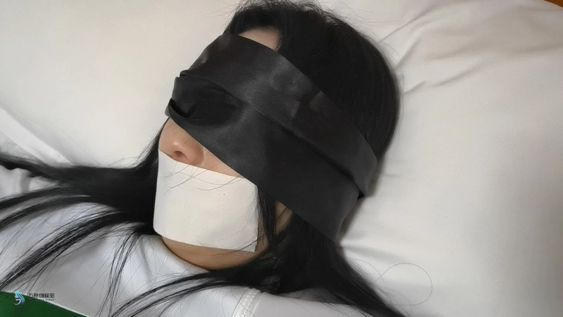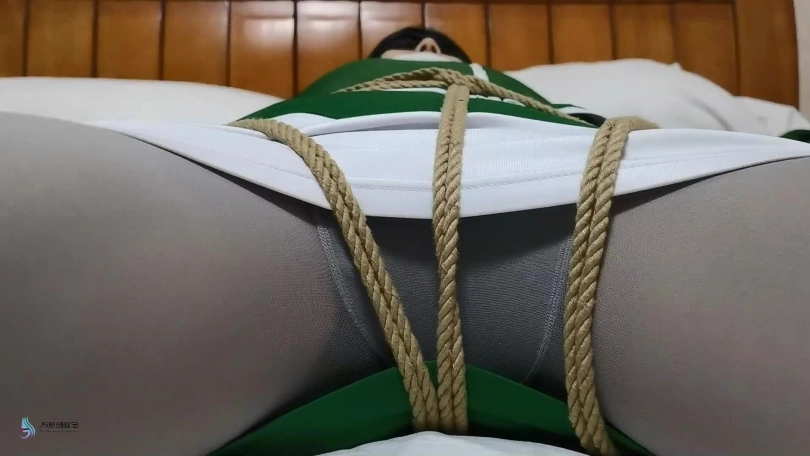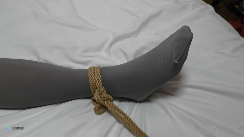 女孩挣脱的束缚,就当她快要跑到门口时,从后面窜出很多条绳子,将她的脚,手腕,脖子缠住,并将女孩拖拽到房间里。当画面再亮起时,我们看到女孩被绑在床上,嘴巴被胶带封住,眼睛被蒙着。绳子缠绕着女孩靴子的拉链向下拉去,女孩的靴子被脱掉了。露出了一双灰色丝袜脚。很快女孩的双脚也被绳子固定住。这时绳子又缠绕着一根棒子,不断的刺激着女孩的脚底。女孩很怕痒,不断的挣扎,但这并没有用,绳子已经将她牢牢的束缚在床上。最终女孩挣脱了束缚,逃离了这个可拍的房间。