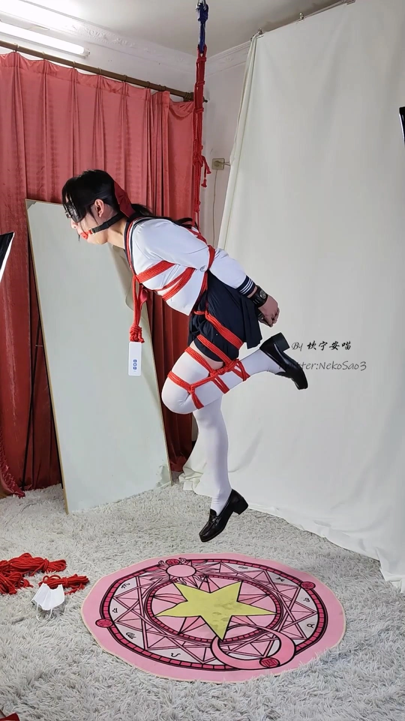 【坎喵】过膝白丝水手服JK后手直臂折腿悬吊自缚