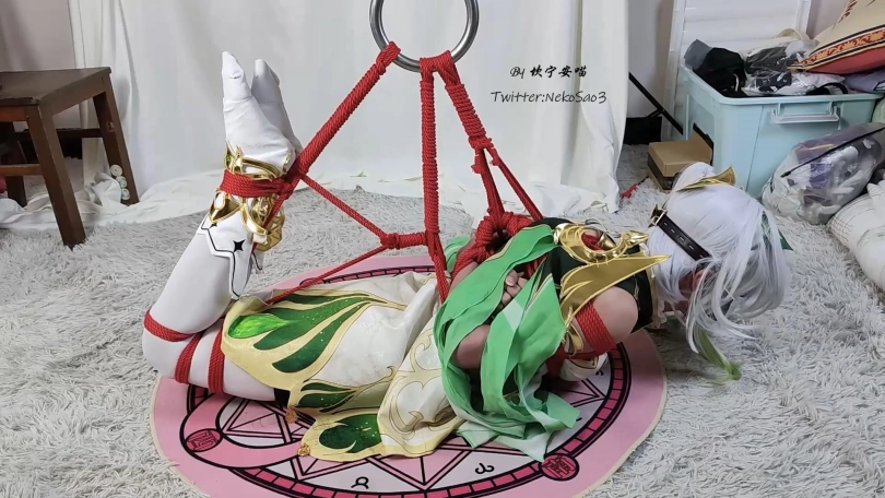 【坎喵】原神cos-草神纳西妲白丝驷马悬吊电击-痛苦挣扎