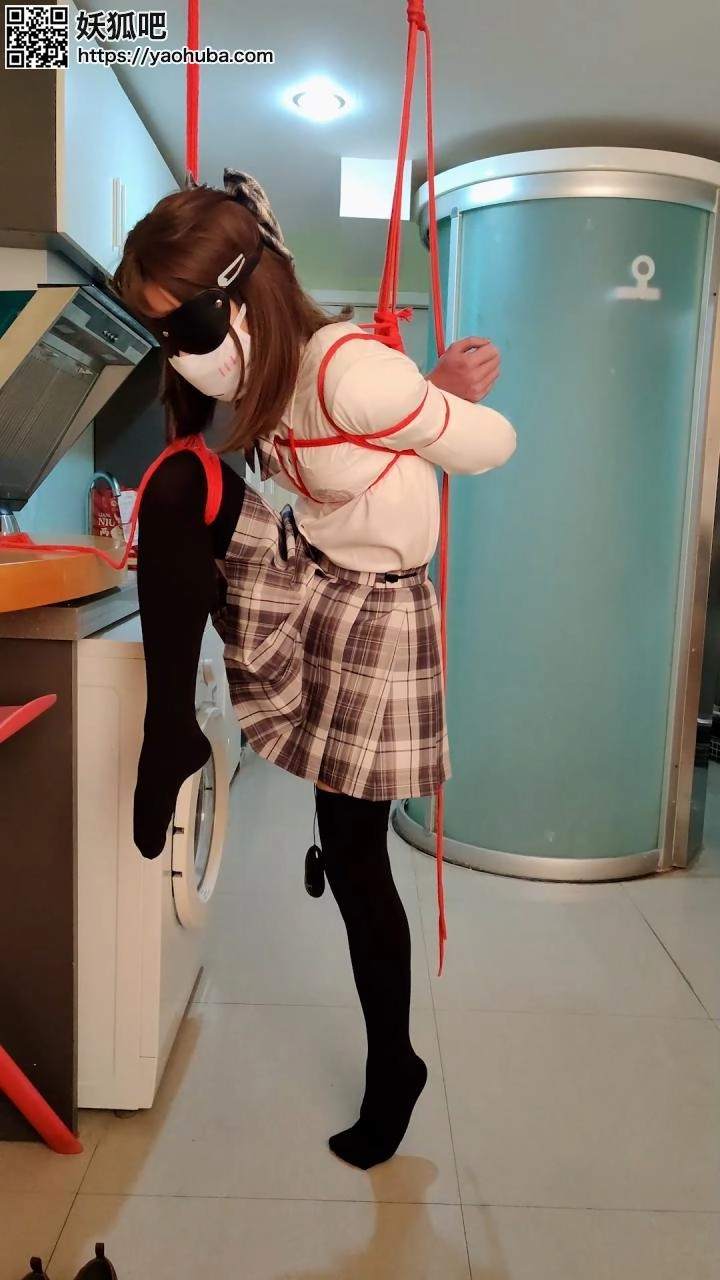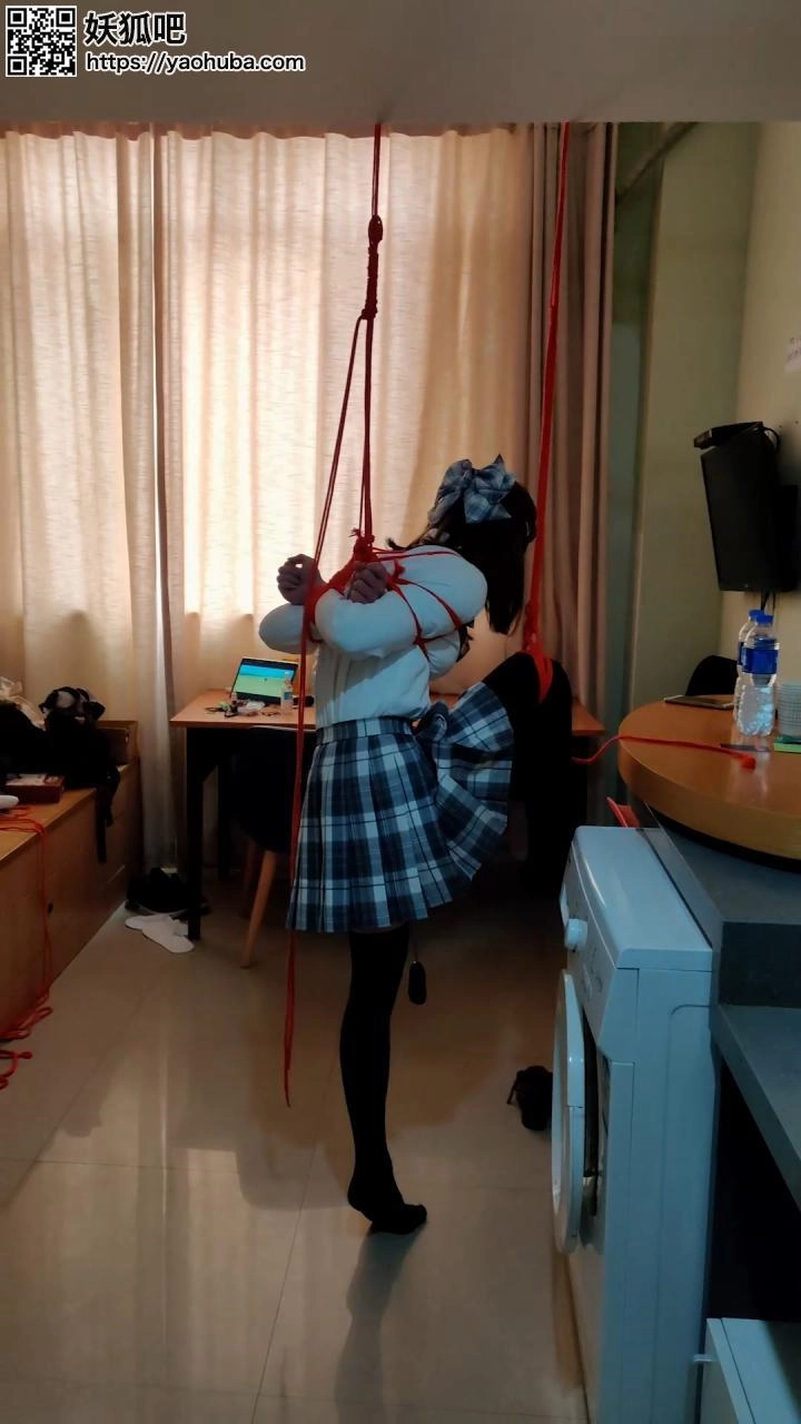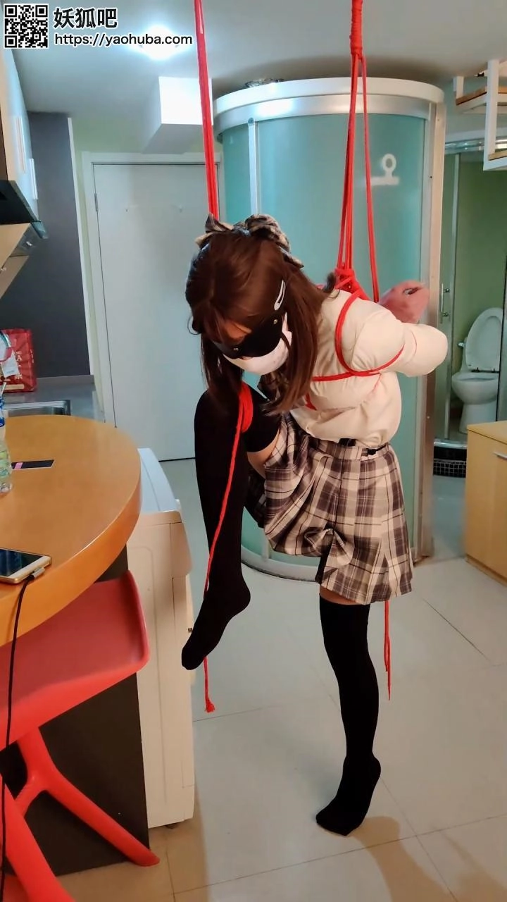 【坎喵】女装子JK单脚吊缚+驷马调教