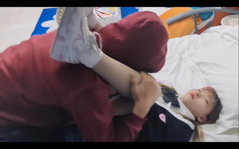 少女被弄晕后脱衣摆弄,涉及元素有睁眼昏迷、摆弄、换装、JK、丝袜等。