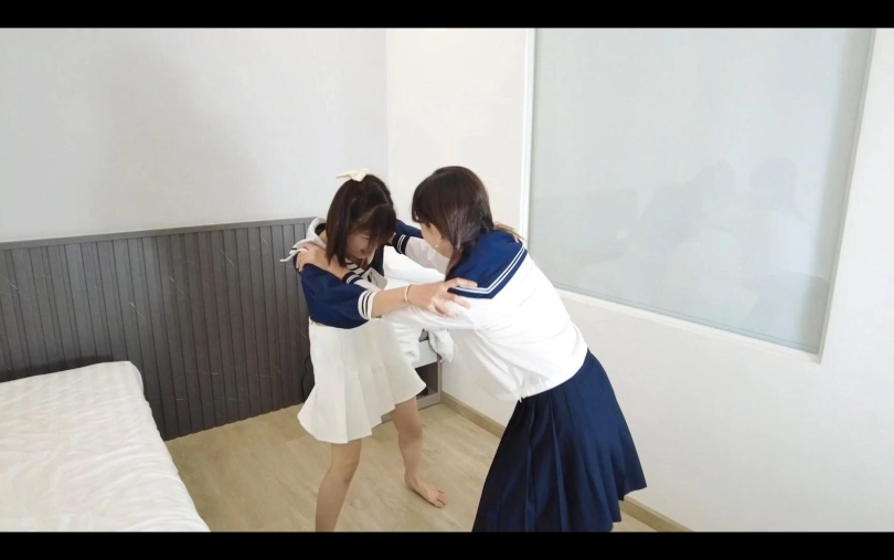 两个JK美女互相看不顺眼,互相扭打,扯下对方的衣服,弄晕对方玩弄、翻眼皮、舔脚,最后艾米战胜小丽,昏迷的小丽被艾米玩弄......涉及元素有JK、裸足、白眼、足恋、昏迷、摆弄等。