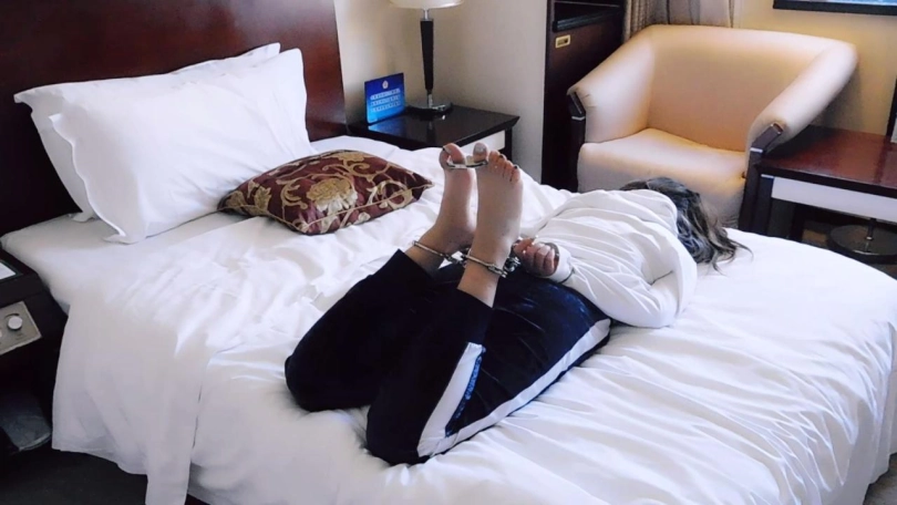 【趾间艺束】阿狸遭遇黑心酒吧 被拐卖 镣铐缠身 手铐脚铐拇指铐脚趾铐 运动装内衣小白鞋棉袜
