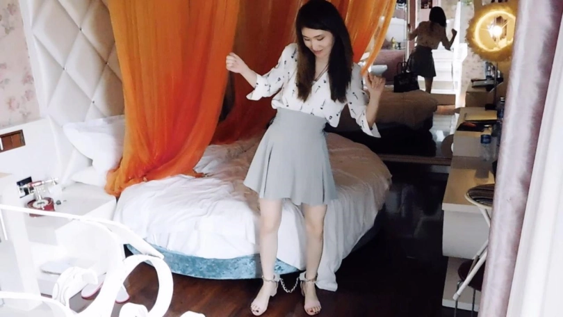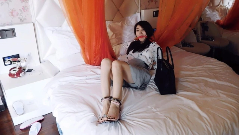 妹子带着一包东西回了家,是刚购买来的镣铐,妹子十分开心,决定玩玩刺激的。妹子首先找出脚镣,给自己锁上。妹子下地走,感觉十分刺激,非常有趣。妹子再次给自己锁上脚铐、链子脚趾铐,下地走,感觉更加刺激,非常有趣。妹子这次找出一个板铐,戴上口球,给自己塞入蛋蛋,手背后锁好,感觉达到GC,不断扭动身体。玩了一会,妹子想找出钥匙解开自己,够到包,却怎么也没找到钥匙,包内已空无一物。这时妹子才想起来,买的时候似乎就忘了给钥匙,这下麻烦了。妹子不停挣扎,企图弄下镣铐,却无济于事,而且蛋蛋也十分的痒痒,想关掉它却也够不到。最后妹子一直挣扎,着急的哭了。