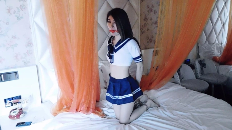 【趾间艺束】美女晶晶威胁邻居反被铐 TK挠脚心惩罚 手铐脚铐脚趾铐 水手服帆布鞋 口球