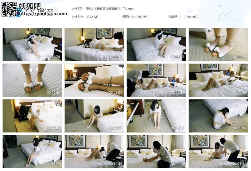 新娘妹子自己进来,等不来人接她,觉得很累就躺下睡了。坏人出现,然后穿着凉鞋,锁上链子脚趾铐、脚铐,然后离开。妹子醒了,然后发现脚被锁住了,很着急,各种喊叫,找钥匙,下地走。之后累了,又继续睡觉了。坏人再次出现,脱下凉鞋,给妹子锁上板铐、2个脚趾铐,然后离开。妹子醒了,然后发现脚被锁的更紧了,十分着急,各种喊叫,找钥匙,下地爬。这时坏人再次出现,妹子受到惊吓,被锁上背铐,拿出三筒把脚腕脚趾连起来,挠脚心。