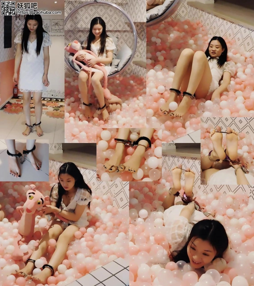 【趾间艺束】洋洋镣铐玩海洋球被发现 驷马惩罚 挠脚心TK 手铐脚铐脚趾铐 白色礼服棉袜帆布鞋