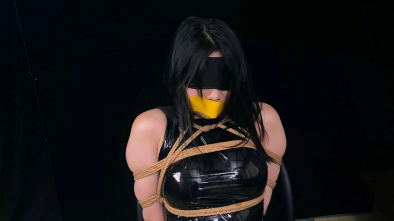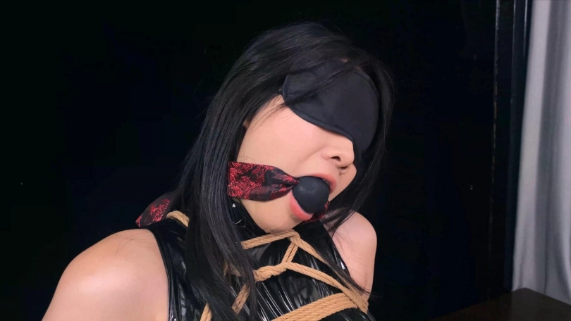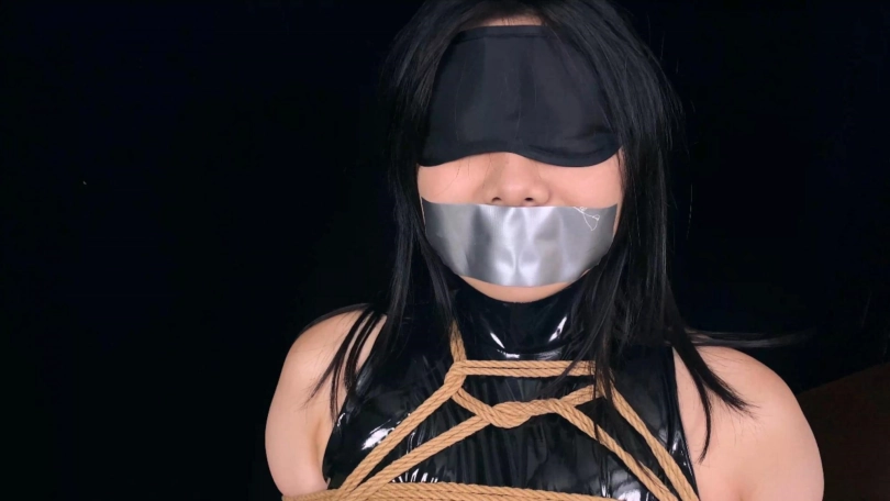【象人】撕胶带!沉沉-漆皮勒B紧身衣,手脚都被牢牢绑住,被迫放置口球胶带,震动!