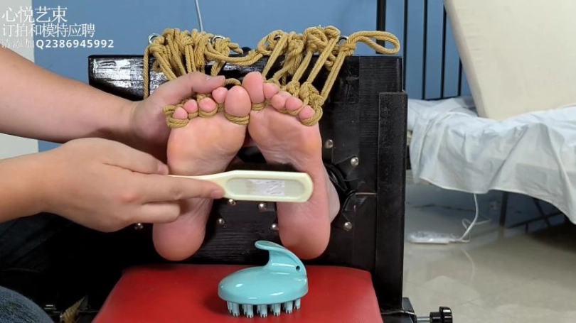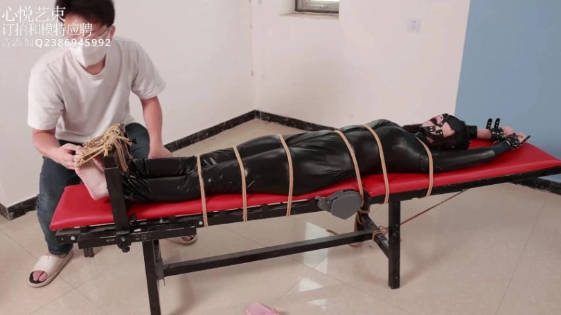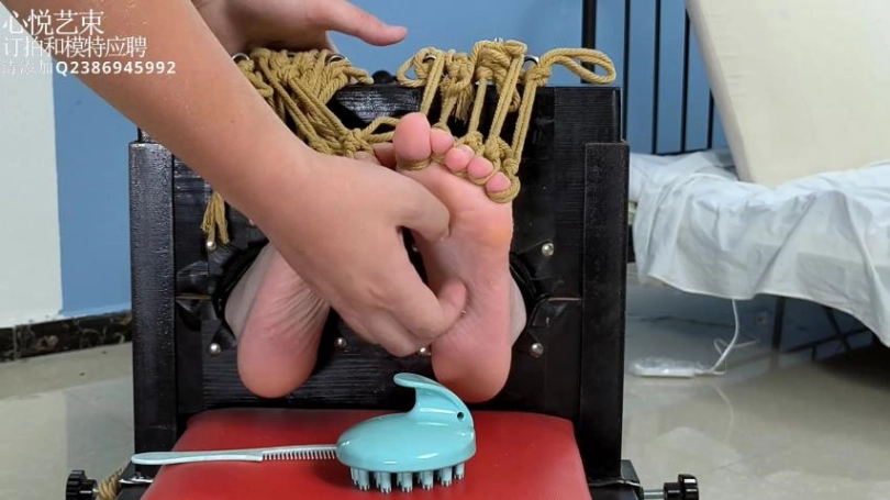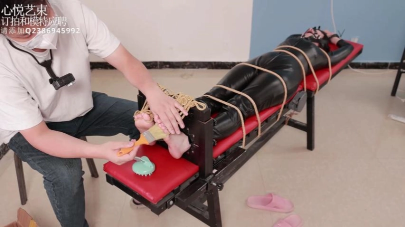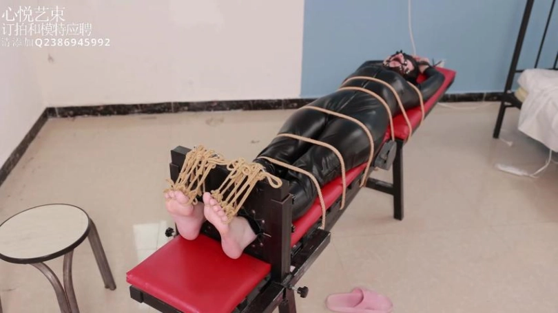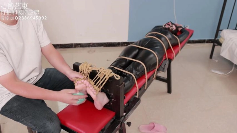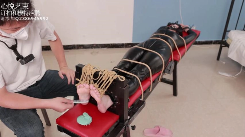 【心悦艺束】足控福利,皮革女王老虎凳完全拘束。脚趾全绑,马具口球。绝命TK。