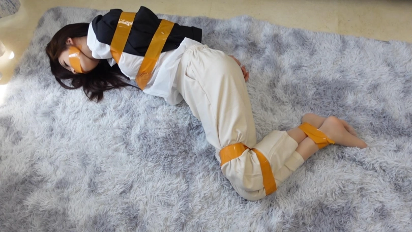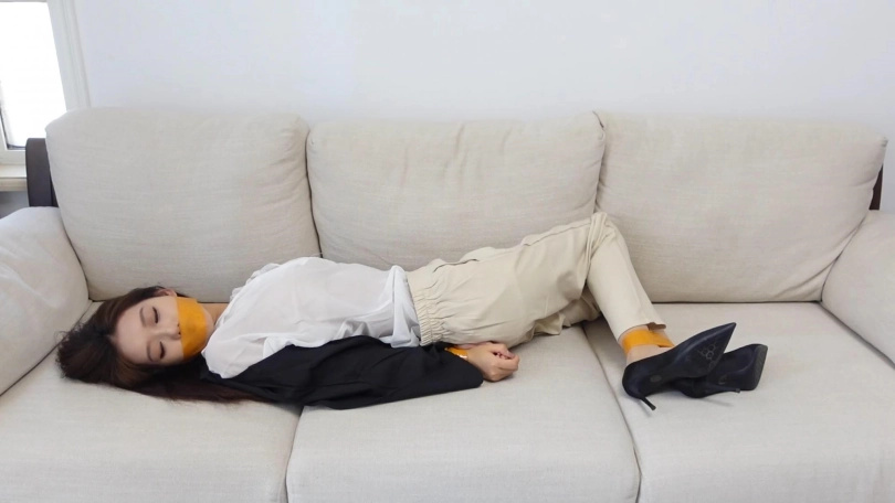 【树屋轻调】入室抢劫:OL打扮裤里丝的灵灵下班回家遭遇歹徒,被胶带KB挣扎、被歹徒玩弄全身,苦苦哀求努力自救,试图用脚打电话求救但无济于事