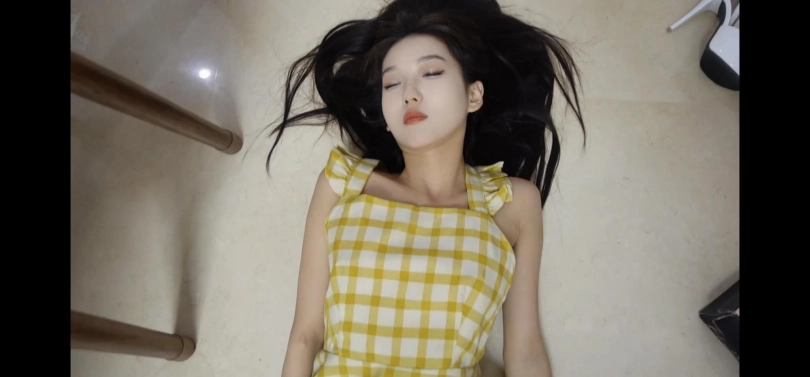 男主开门进来,看到女主吃了一惊,摸了摸女孩的脚,说道:“还是热乎的,还活着,不过这妹子躺在地上一动不动的是啥情况啊”说着男主掀开被子,之间女主恬静地闭着眼睛,双手十指相扣叠放在小腹上,好像睡着了。(镜头特写两分钟左右)然后男主用手同时翻开女主的两个眼皮(脸部近距离出现在镜头中),发现她目光呆滞,说道:“不像是下了药的,看起来是被打昏了,看样子还挺严重,完全丧失意识了”说着男主松开手,女孩的眼睛自动闭上。然后玩弄了一会她的手指,然后抬起女主的腿玩弄,并且玩弄了女主的脚,女主还是一动不动,男主又拽起女主的手把她拉起来使劲摇晃,女主还是没有反应。男主就把女主放到沙发上躺着,让女主的头靠在男主腿上,反复拍打她的脸,摇晃她的身体和腿,但是女主还是不省人事。男主拉起女主的手,看了看她的手表,说:“时间还早,我还是继续玩一玩,给你拍几个照留个纪念”然后男主让女主瘫坐在沙发上,翘着二郎腿。(镜头给特写两分钟,并且有半分钟的脚部特写)然后男主又把女主放到一张长桌子或者茶几上平躺着。(镜头特写两分钟,半分钟脚部特写,如果没有长桌子或者茶几就把女主放在地上)然后男主又把女主搂到怀里继续玩弄了一会女主的手,然后又抬起女主修长的腿把玩,并且抚摸她的脚。最后又把女主公主抱起来走了几圈(期间女主头无力后仰,体现出昏迷的真实感)然后放到床上。女主十指相扣叠放在小腹上,仿佛睡美人。(镜头特写两分钟)男主说道:“真是的,送个妹子陪我就算了,送个晕了的妹子不晓得是几个意思,我检查检查,万一出啥事就麻烦了”然后男主反复拽着女孩的手,把她拉起来摇晃,女主还是没有反应。男主又摆弄女主的手,然后抬起她的腿玩弄。然后男主又将女主翻了个身,让她脸朝下趴在床上。(镜头特写两分钟,脚半分钟)男主说:“看起来没什么问题,我过会再接着玩你吧” 说着把女主放到地上,然后拽着她的脚,把女主拖到客厅,然后把她放在地毯上躺着,一只手搭在身上,一只手放在地上。一分钟后,男主让她十指相扣叠放在小腹上,拿起被子盖住女孩的脸和身体,只露出小腿和穿着凉鞋的脚,和开始一样。