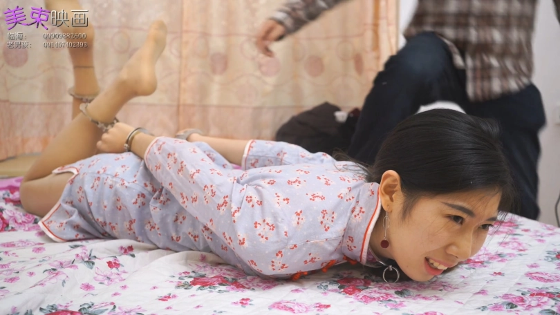 妹纸带上手拷、脚拷、项圈后,只能任由我调戏啦。无可奈何的表情,只能默默忍受着,很有意思哈。