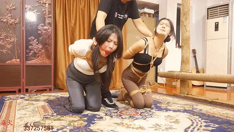 看着眼前把自己打得浑身疼痛的李然,老板愤怒的教训了她一顿,并拽着被紧缚的李然到了关押凉兮的密室。凉兮在师姐李然的呼喊中渐渐苏醒,看到被抓的师姐开始奋力挣扎绳子。老板狠狠的教训了一顿这对姐妹,最终将两人驷马捆绑起来,任由她俩在地上挣扎。