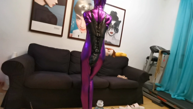 【JS】凌薇-紫色胶衣-单手套-动感单车强制TJ