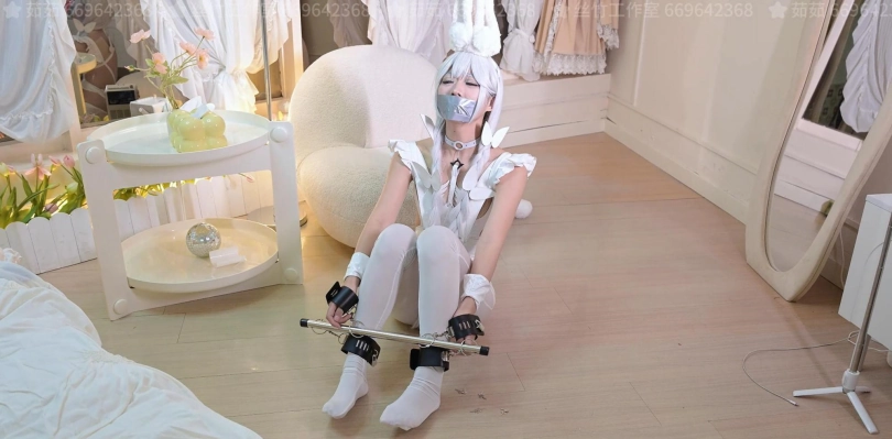 【丝竹】cosplay 调教可爱白兔 ,主人不在家偷偷玩玩具,白丝美腿,主人突然回家被抓现行,进行放置捆绑固定