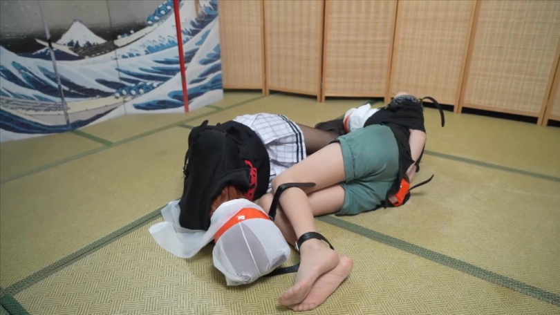 樋口円香趁着高垣枫玩手机从身后迷晕高以后,用捆绑带束缚住高,趁机玩弄她