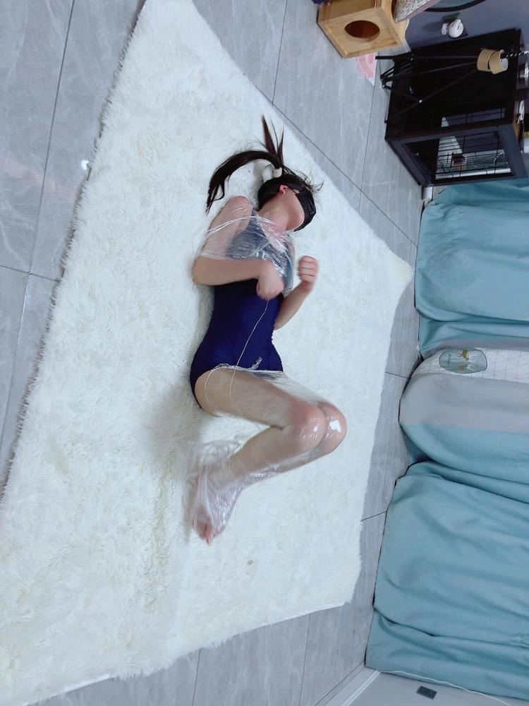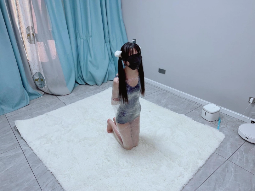 【咕咕精】【挣扎超多】茶茶保鲜膜全包脱缚挑战2-透明保鲜膜驷马全包-超紧!双马尾死库水小萝莉的绝望挣扎一次看过瘾