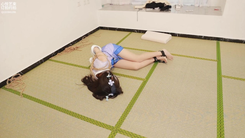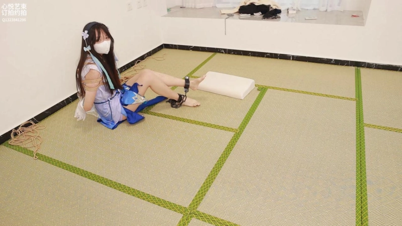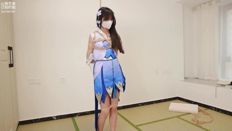 嘉嘉的cos西施妹妹体验片足吊缚,不得不说较弱的少女,还是不太能适应。这一吊还勒到肩膀的绳子造成了右臂小臂两天麻痹。还好解下来还算及时。后面玩弄一下玉足,最后十分钟留给嘉嘉在房间里独自玩耍,嘉嘉似乎对脚上的镣铐比较有兴趣,一直用玉足玩弄脚踝上的镣铐。(当然也可能是全身被绑也没啥别的能玩哈哈。)