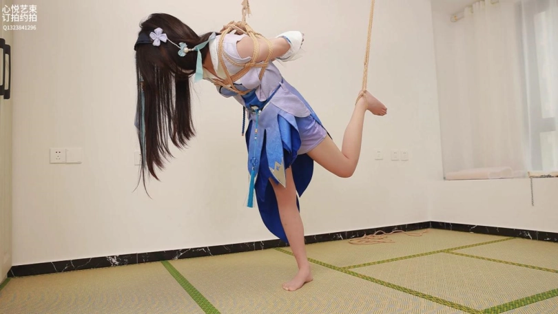 【心悦艺束】新妹子嘉嘉试镜第三弹,日式紧缚,片足吊缚,重镣行走,西施cos,美腿玉足。不可错过