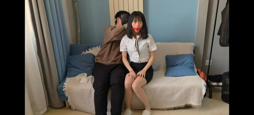 激辣被制服后带上口球,堵住嘴巴,小声呻吟着,被面具男一遍又一遍地抚摸着,好不舒服,最后又被迷晕后拖到了沙发上。
