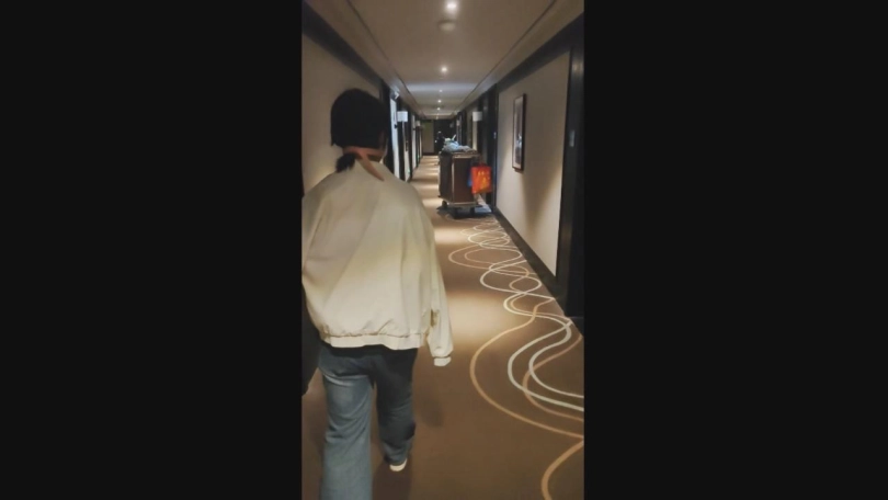 事先没有跟妹子说,绑好后就直接带着妹子出酒店房间,在隔壁房间有一位大妈在搞卫生,推车就放在门口,不知道看见我们没有,在电梯门口碰见了一位领班大姐,正好我把妹子外衣脱掉了,估计她有点惊吓到了连忙往回走,害我赶紧过去跟她解释了一下,回房间的过道上又碰到一个住房大哥出来,这位大哥经过我旁边,站我身后足足看了十几秒,有那么一点点尴尬,回房间后还没松绑妹子就踢了我一脚,估计是气恼我没提前跟她说,不过整个过程妹子还是挺配合放松的。