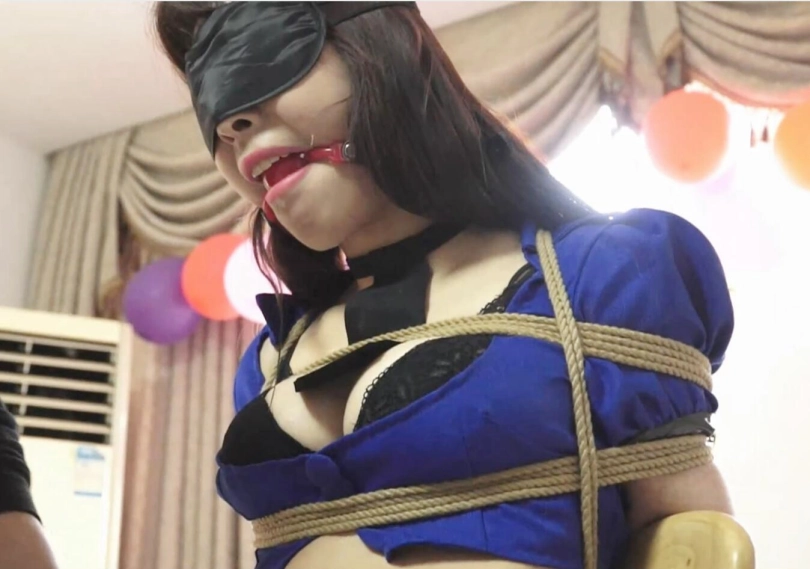 各种玩法捆绑,后手,口球口水,眼罩,跪地爬行(膝盖都磨破了)