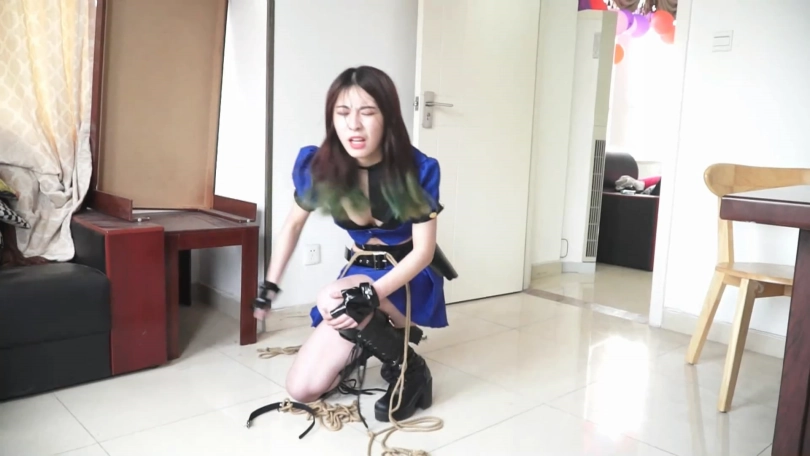各种玩法捆绑,后手,口球口水,眼罩,跪地爬行(膝盖都磨破了)