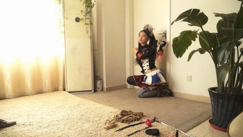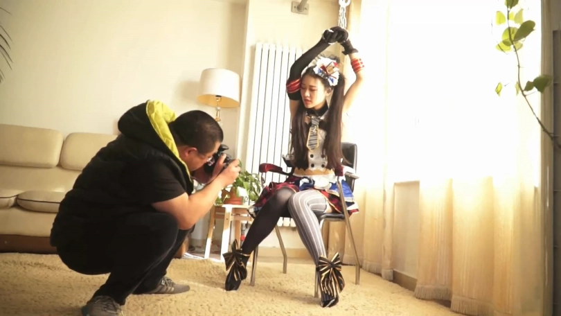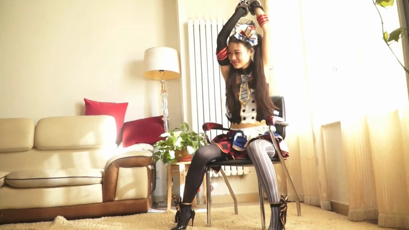 可爱的少女cos成女仆来约拍,却中了摄影师的诡计,双手搞搞吊起,被摄影师猥琐的拍摄裙底风光