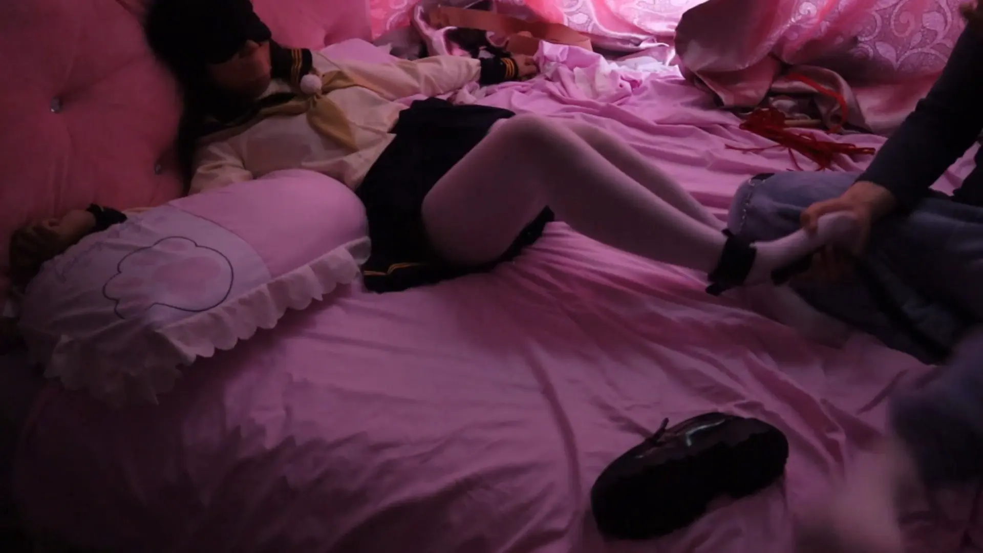 慢慢的接触到从按摩到脱下白丝小皮鞋开始无情鞭打,啪啪呜呜呜 别打我不是按摩吗