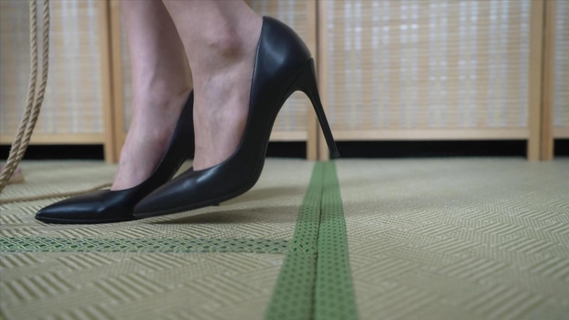 2.后高手,手被绷带包紧,大腿,脚踝都被捆绑,穿高跟走路